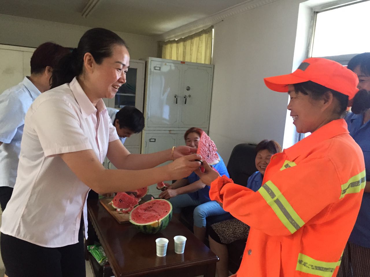 此次慰問活動,不僅給清潔工們帶去了一絲涼意,感受到公司領(lǐng)導(dǎo)對他們的關(guān)懷,更振奮了他們的精神。