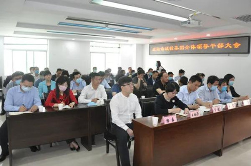 市國資委黨委書記、主任韓彥霄出席會議并講話,市城投集團(tuán)公司黨委書記、董事長李立戰(zhàn)主持會議,市國資委黨委委員、副主任唐璞,市國資委組干科科長吳昭,市委組織部干部二科干部秋元元出席會議。集團(tuán)公司領(lǐng)導(dǎo)班子全體成員、機(jī)關(guān)中層干部、下屬各單位領(lǐng)導(dǎo)班子成員共50余人參加會議。